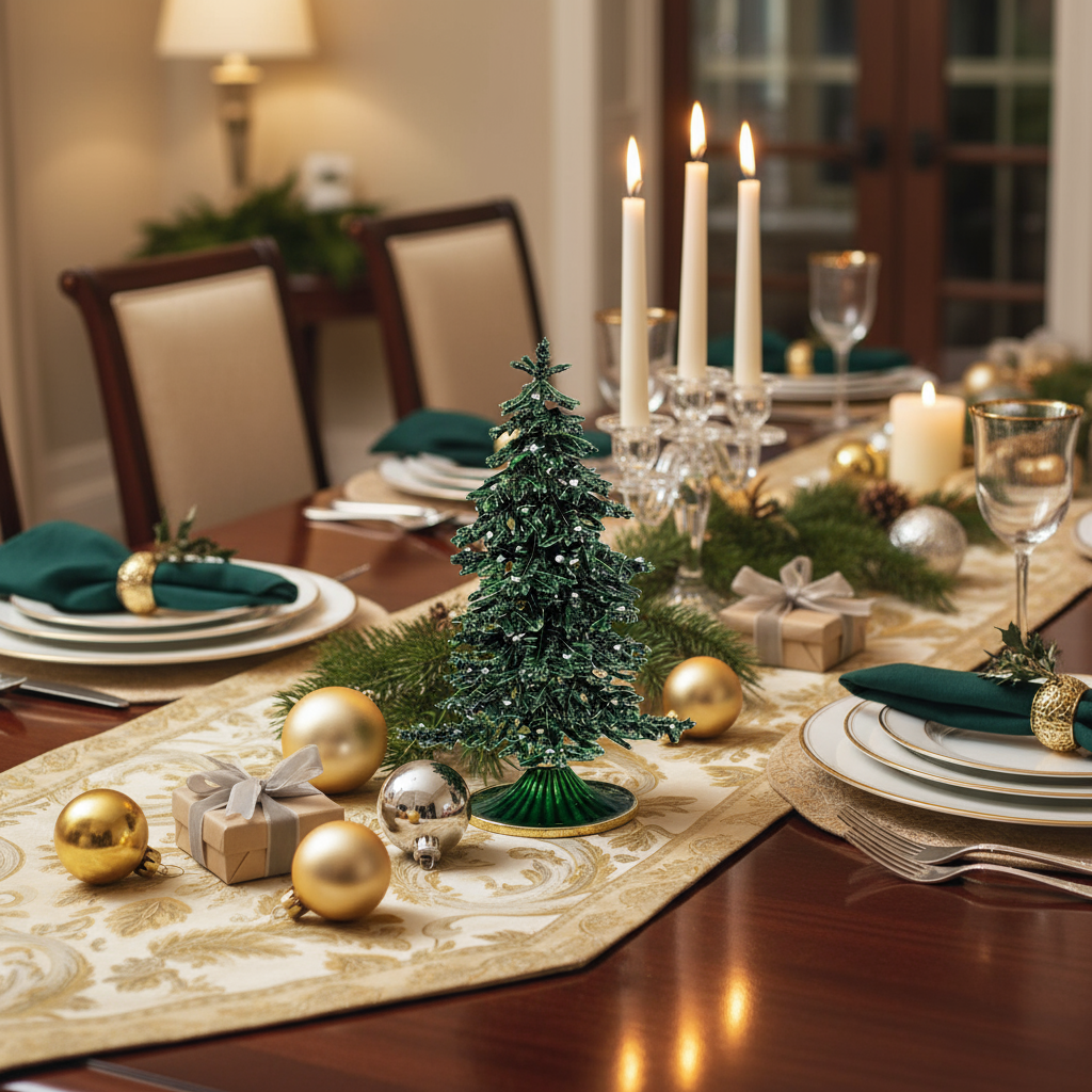 Heirloom worthy gold finished pewter Christmas tree objet, with lush green hued hand-enameling and hand-set clear European crystals. Tarnish resistant. Signature luxury gift box included.